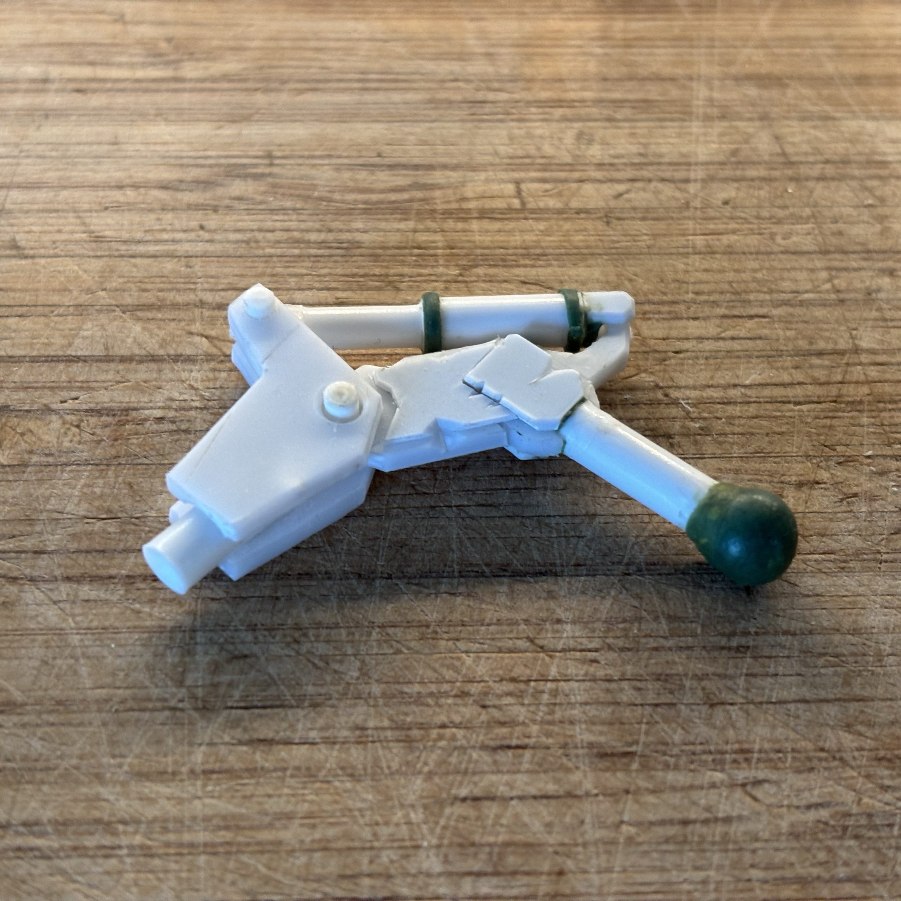 The legs were extended using plasticard rods to make the model look less squatty. The extensions work well making the legs look more proportional with the extended arms up top.