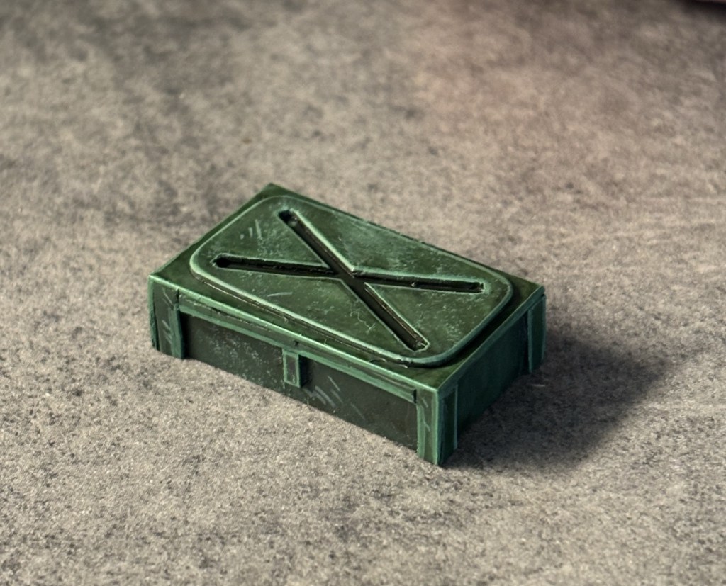I made a rough Astra Militarum weapon container out of some 1mm plasticard. I didn’t have high expectations for this one but it turned out nice once I got some paint on there. 😄