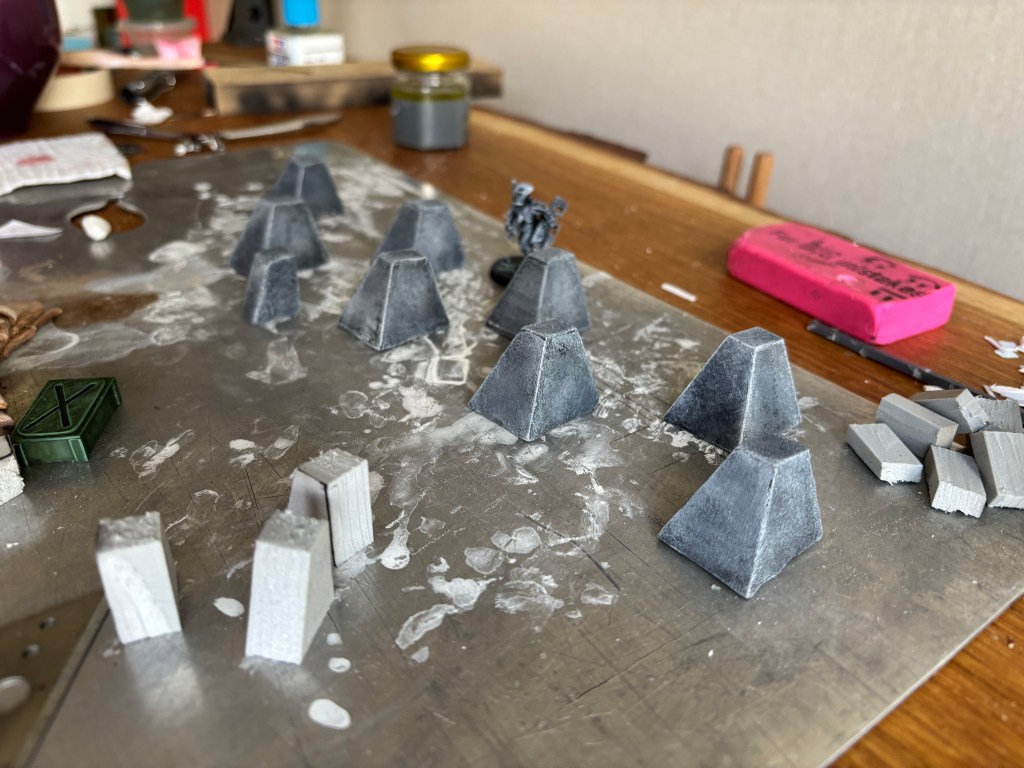 I used the same plaster concrete trick to make some dragon teeth, a type of anti tank fortification.