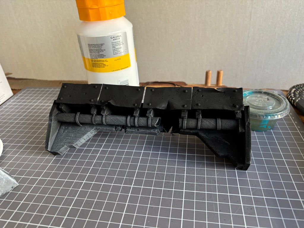 The bridge supports are made from 10mm EVA foam, the same foam that I’ve held onto since my cosplay days almost a decade ago. I kept a big bin of offcuts that I figured would come to use somewhere down the line. 😄