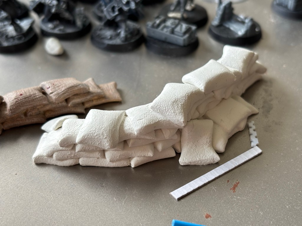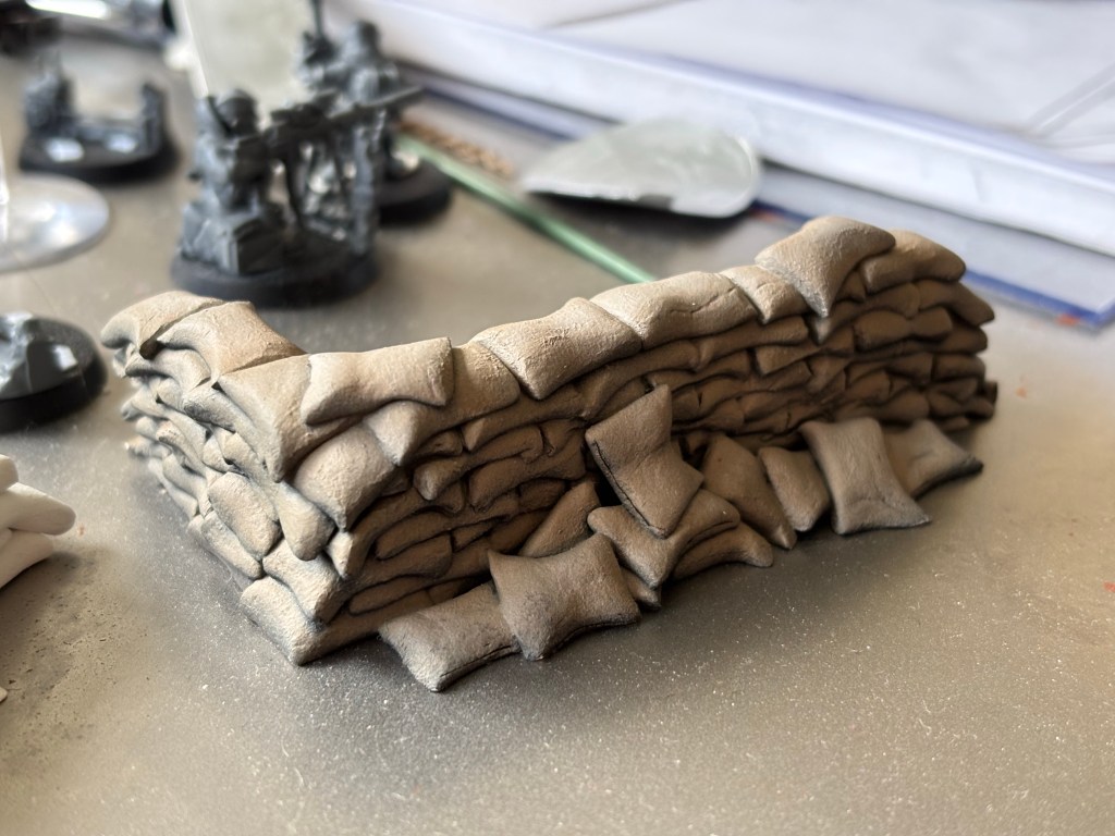 Rounding out with these sandbag barriers made from air-dry craft clay. I followed a tutorial by The Cult Of Crafting on YouTube and I am happy with the results. 😄