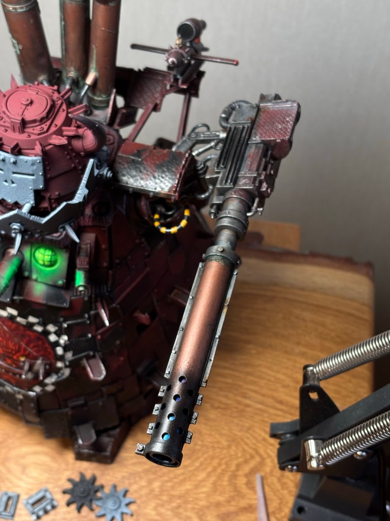 I worked on the deffkannon today. I’m trying to be a bit speedy because I can feel my motivation for this project slowly fade. It’s been a lot to paint but I’m almost at the finish line now! Lots of sponging, drybrushing, and oils on this one, FX paints and edge highlights are doing the heavy lifting here.