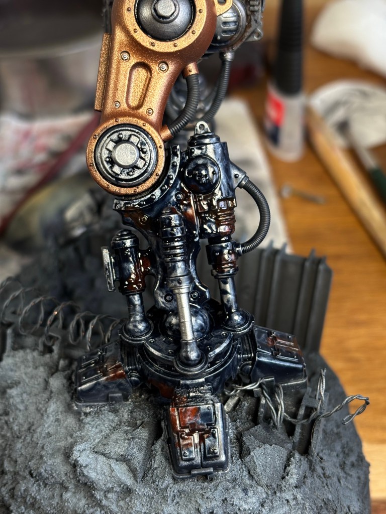Skeleton sprayed vallejo chainmail/hammered copper, drowned in oil and done 😇